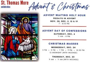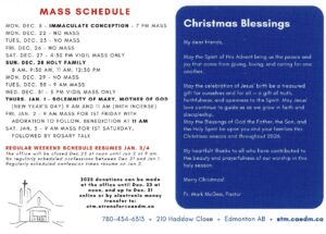 No Mass on Monday, Dec. 22, Tuesday, Dec. 23, or Friday, Dec. 26