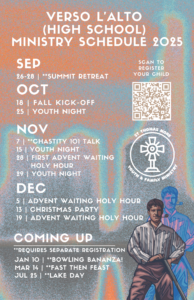 STM is excited to share our vibrant schedule filled with activities for high schoolers to find their place in the Church!